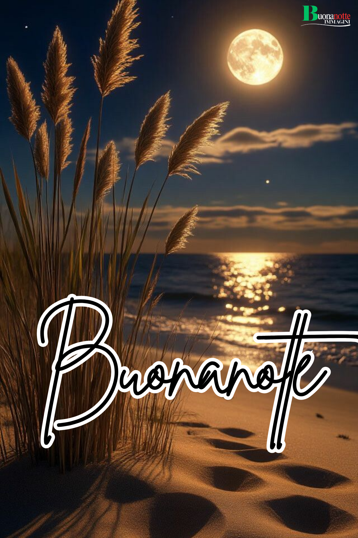 «La luna piena illumina il mare e le dune di sabbia, mentre le spighe dorate ondeggiano nella brezza della sera. Buonanotte.»