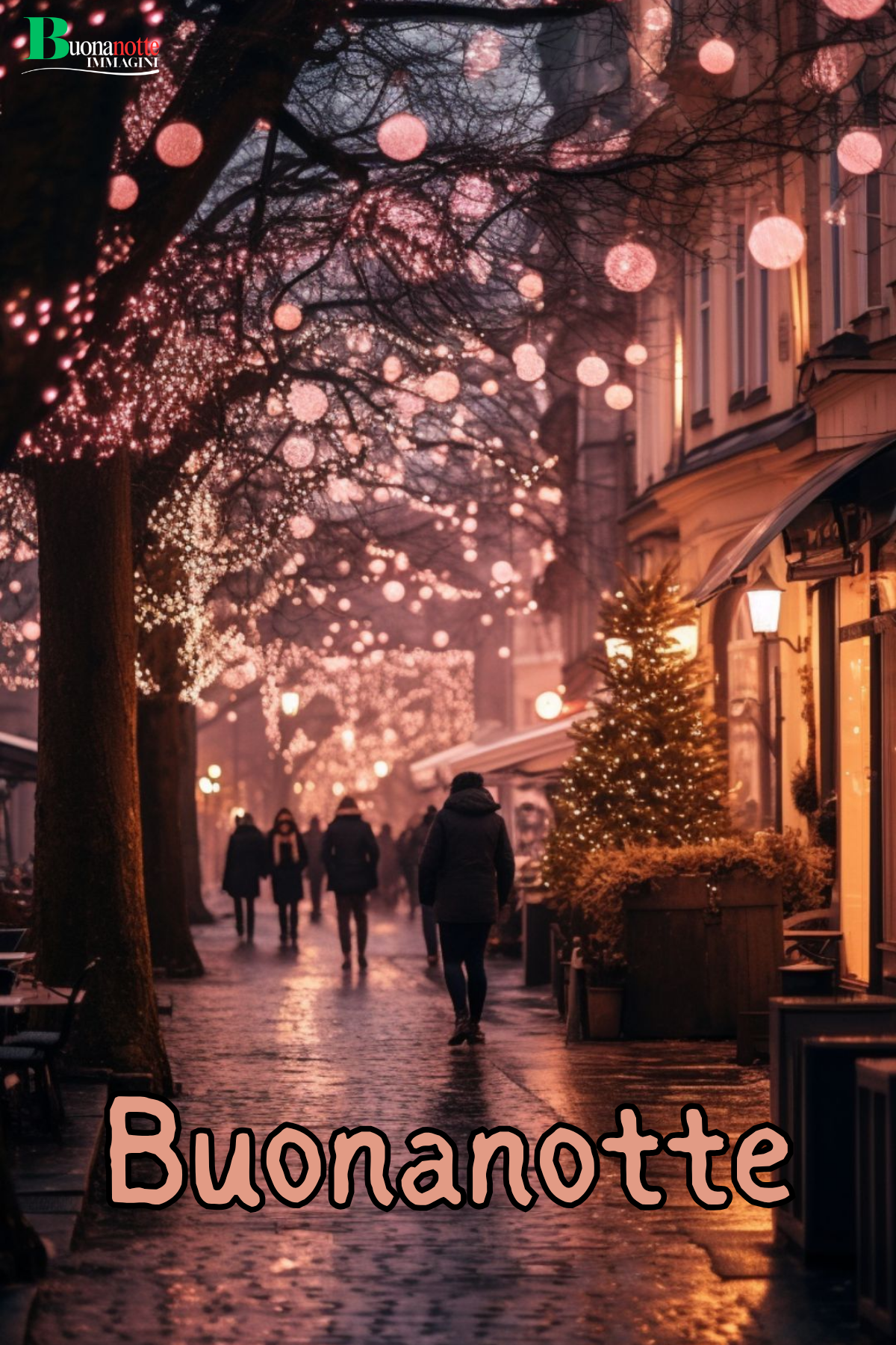 Un nuovissimo buonanotte immagini recenti con una strada serale illuminata da luci natalizie e persone che passeggiano. Perfetta per chi ama l'atmosfera invernale delle feste.