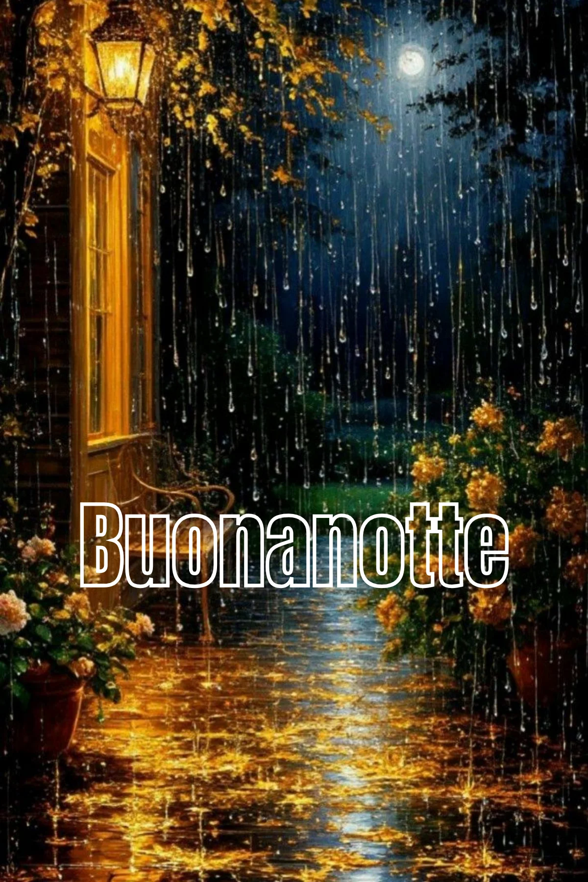 Ideale per chi vuole augurare buonanotte a una persona cara in una serata piovosa, trasmettendo calore e protezione nonostante il maltempo.