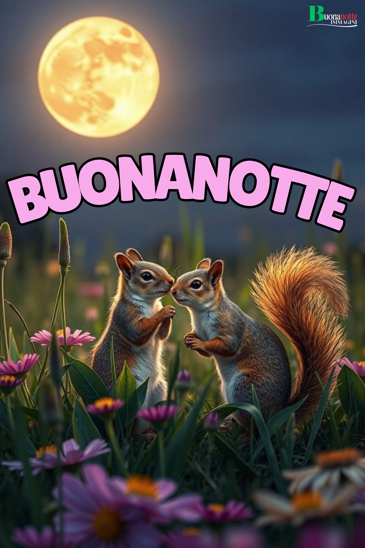 Buona notte buonanotte e sogni d'oro scoiattoli fiori