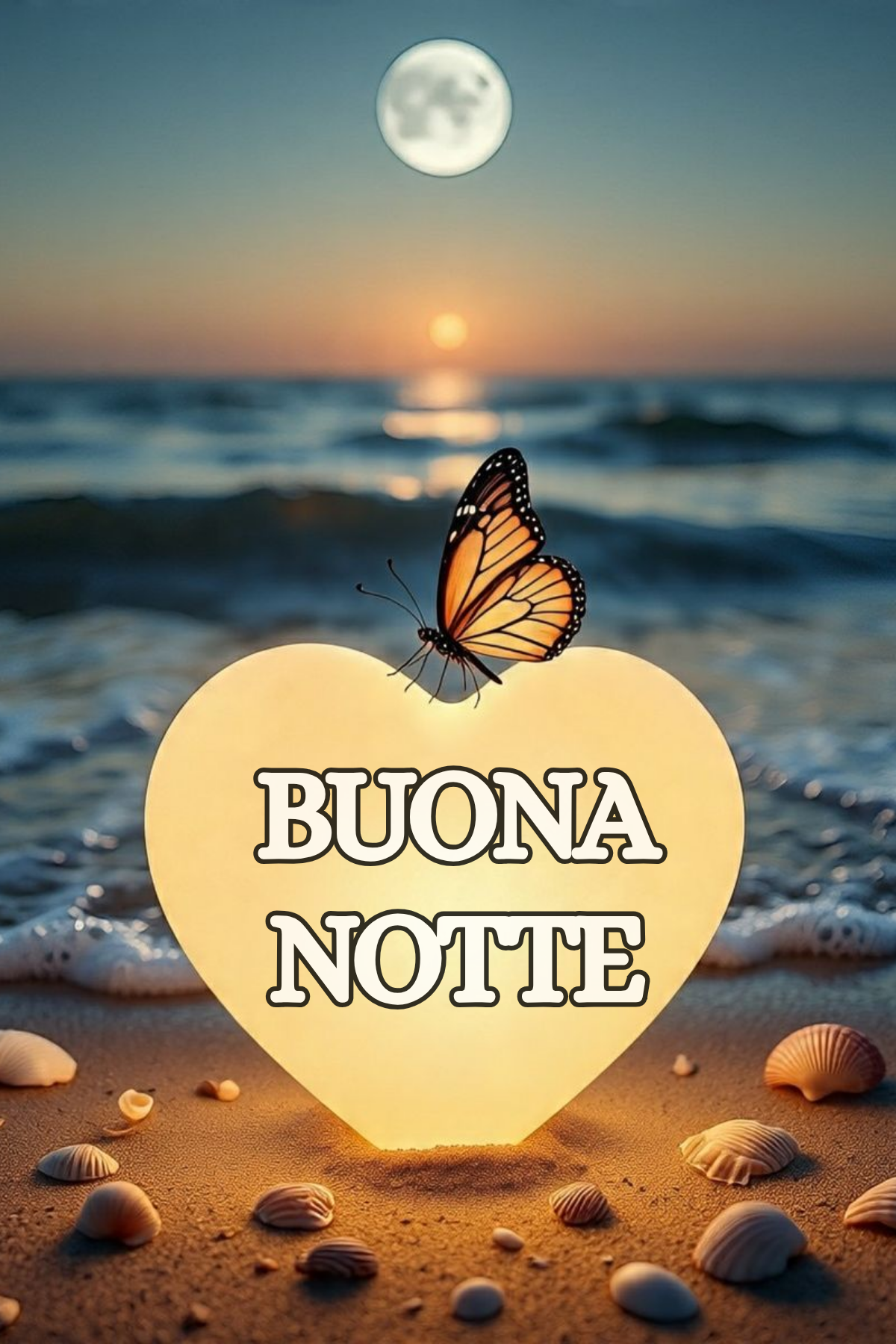 - Buonanotte estiva con luna piena e riflessi dorati sul mare
